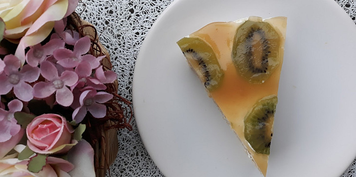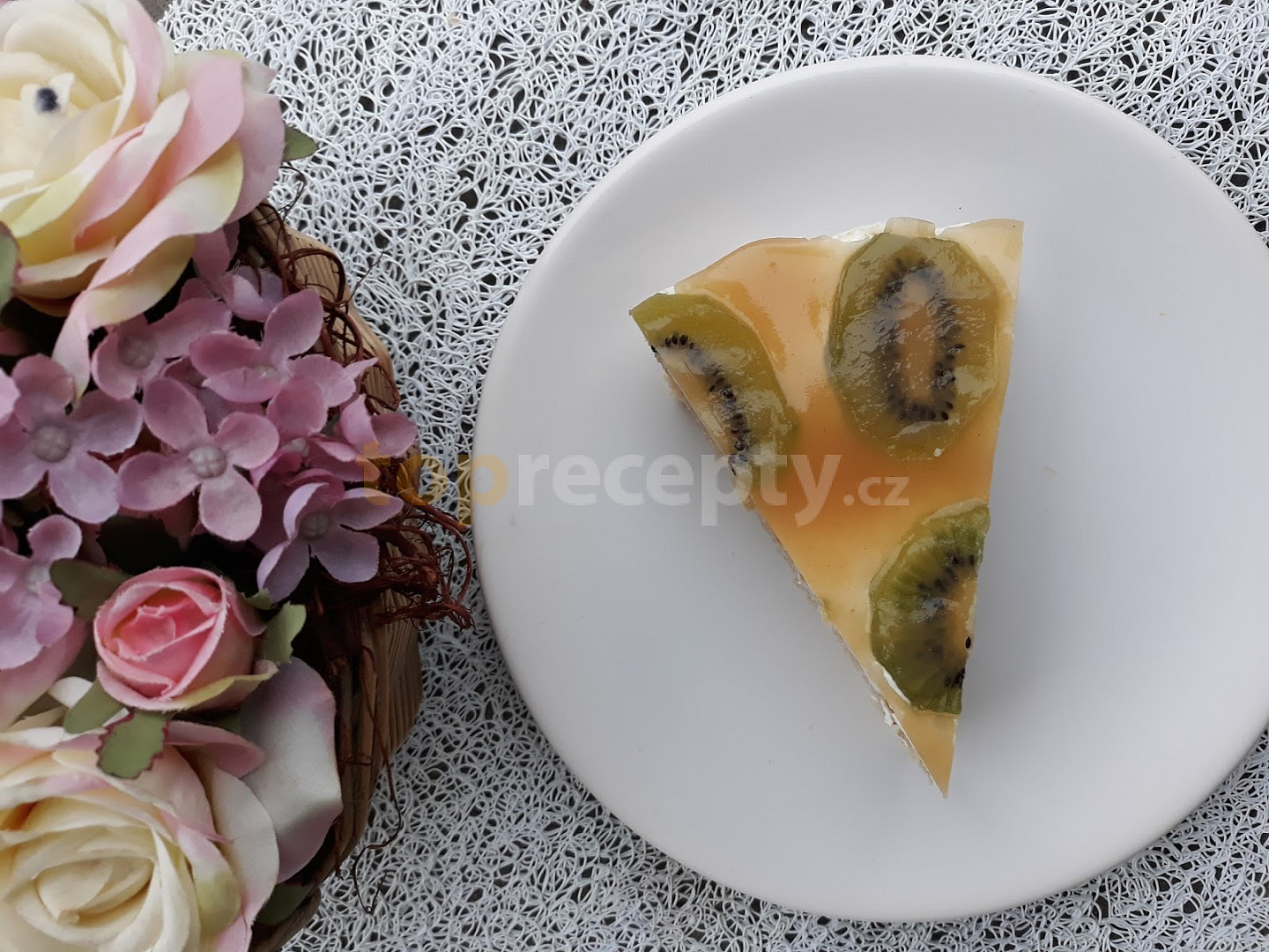 mouka hladká, cukr krupice, vejce, voda, olej, kypřící prášek, smetana ke šlehání, jogurt bílý, cukr vanilkový, voda, pudink vanilkový, sirup kiwi, kiwi, tuk, mouka hrubá