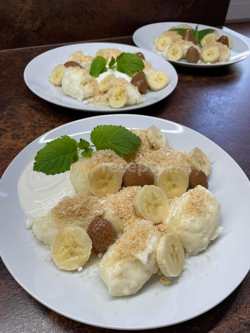 mléko, krupice pšeničná, sůl, cukr, cukr vanilkový, máslo, strouhanka, cukr moučkový, smetana zakysaná