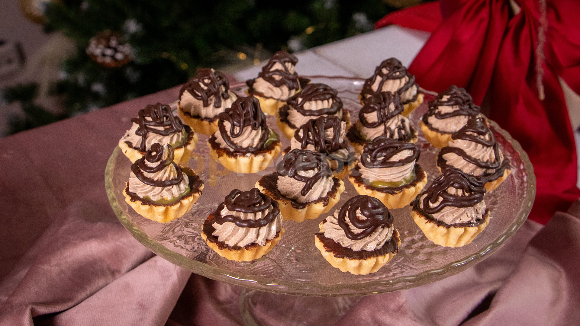 mouka hladká, máslo, cukr moučkový, žloutek, kůra citronová, máslo, cukr krupice, vejce, kakao, rum, poleva čokoládová, likér vaječný