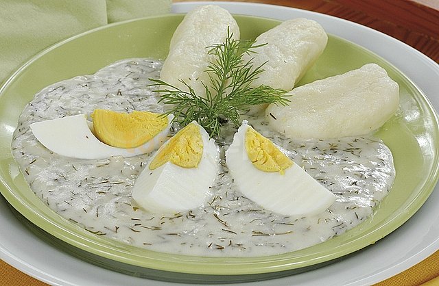 mouka hladká, máslo, smetana ke šlehání, ocet, cukr krupice, kopr, vývar masový, tvaroh, mouka hrubá, vejce, sůl, mouka hladká