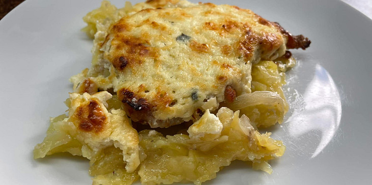 kotleta vepřová, brambory, cibule, česnek, sůl, pepř, kmín celý, paprika, sádlo, smetana zakysaná, tatarská omáčka, hořčice, česnek, sýr