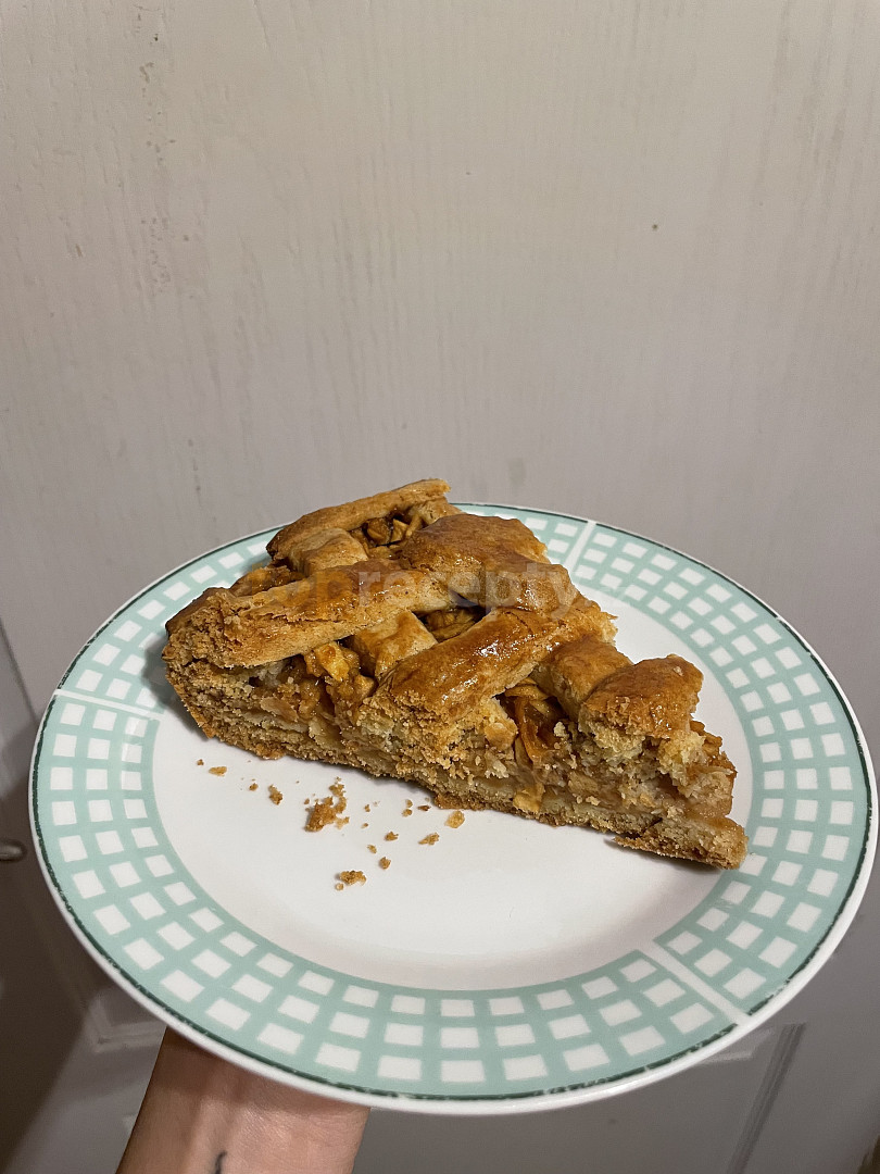Křehký jablečný koláč s přidaným karamelovým pudinkem