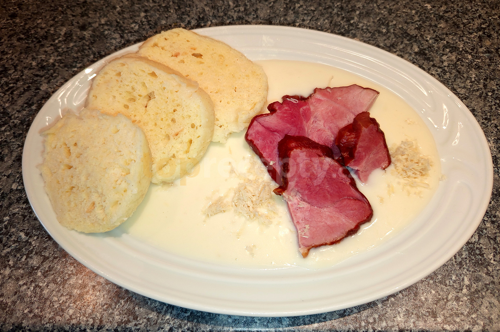Křenová omáčka, domácí uzené a knedlíky