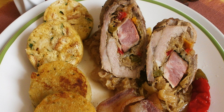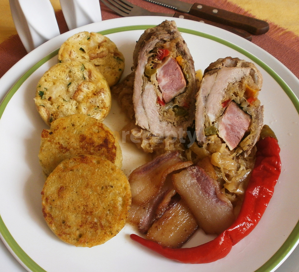 kýta vepřová, krkovice uzená, slanina anglická, zelí kysané, cibule, sádlo, paprika čerstvá zelená, paprika čerstvá žlutá, paprika čerstvá červená, sůl, pepř mletý, kmín celý, mouka hladká
