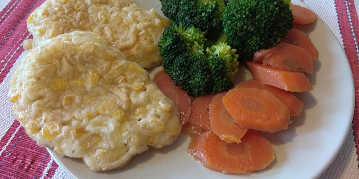 kukuřice sterilovaná, mouka hladká, vejce, prášek do pečiva, mléko, máslo, sůl, pepř