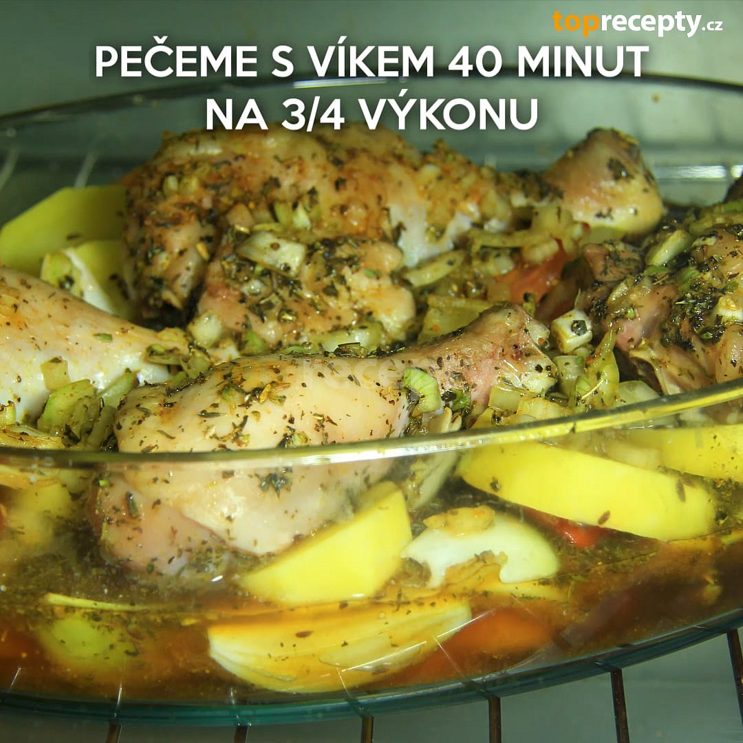 paličky kuřecí, pivo černé, olej, kečup sladký, omáčka sojová sladká, omáčka sojová, majoránka, koření oregáno, tymián, cibule, sůl, brambory, cibule, česnek, rajče, kmín celý