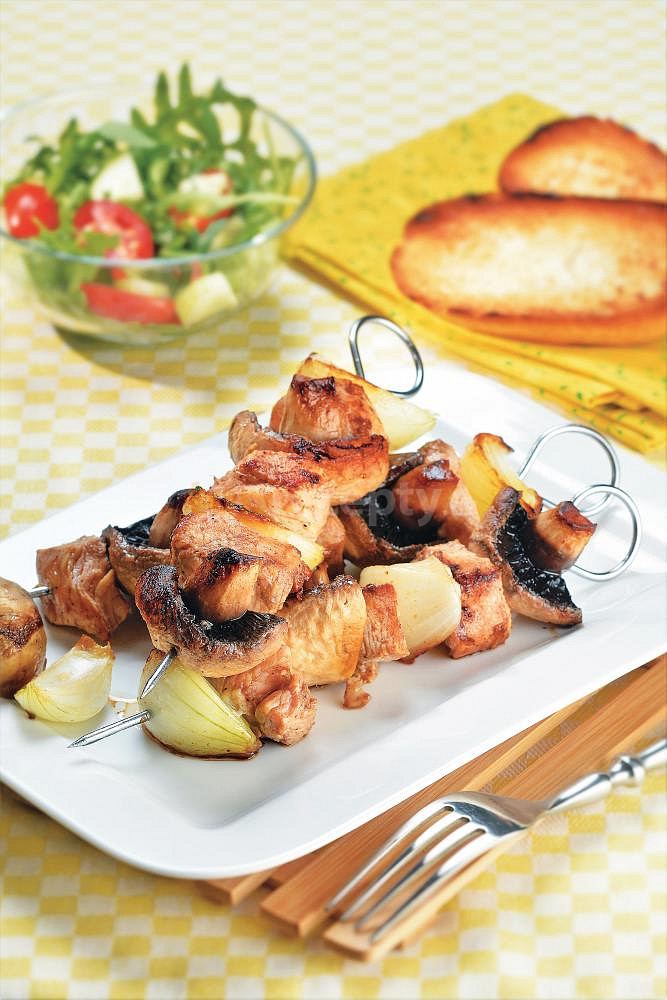 prsa kuřecí, omáčka sojová, olej olivový, zázvor, žampióny, cibule, rukola, rajče cherry, okurka salátová, olej olivový, bageta, sůl, pepř mletý