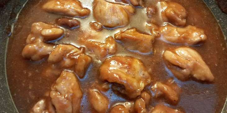 kuřecí stehenní řízky, sůl, pepř mletý, škrob kukuřičný, olej arašídový, omáčka sojová, omáčka sojová sladká, sriracha, česnek, med, voda, škrob