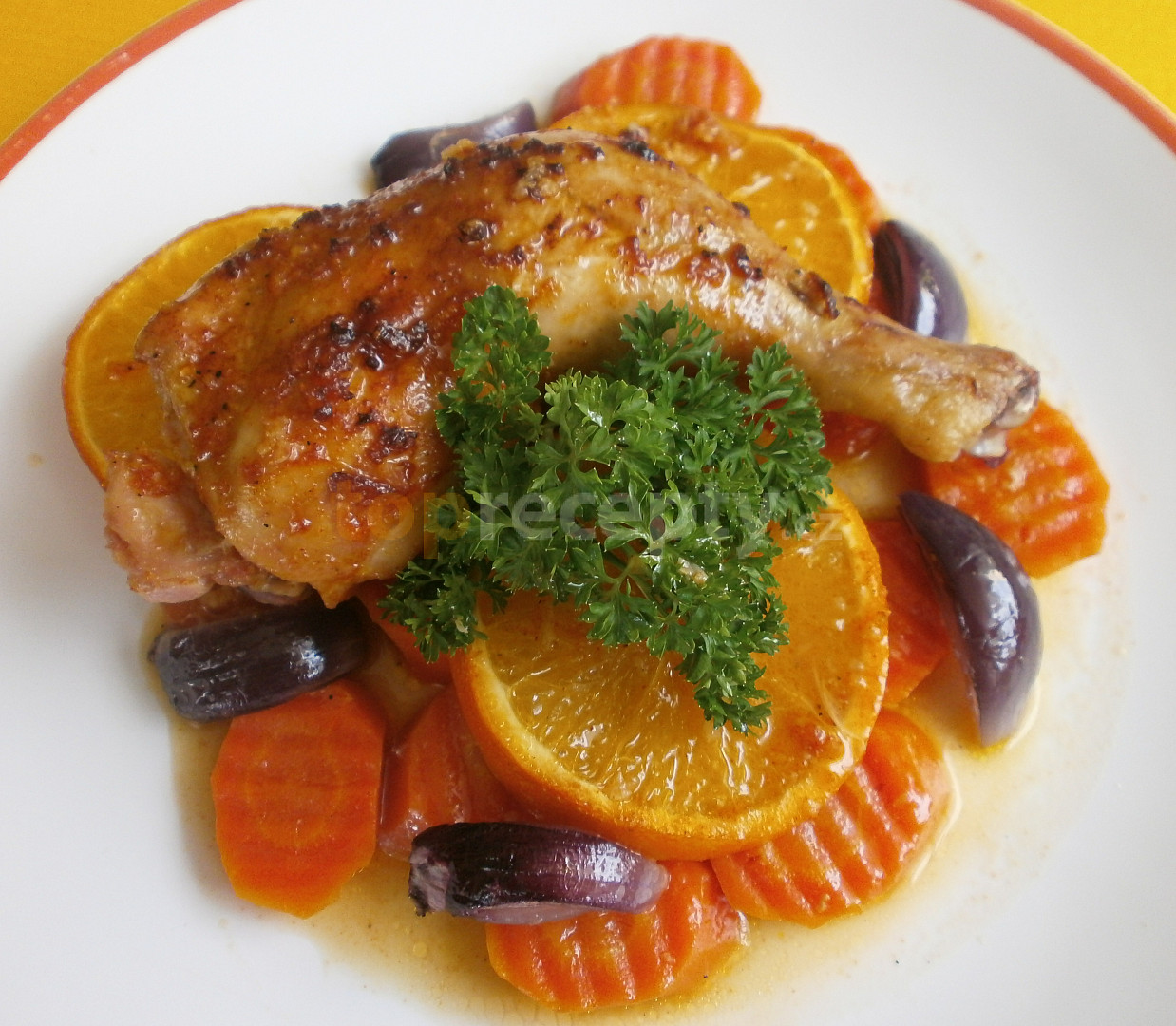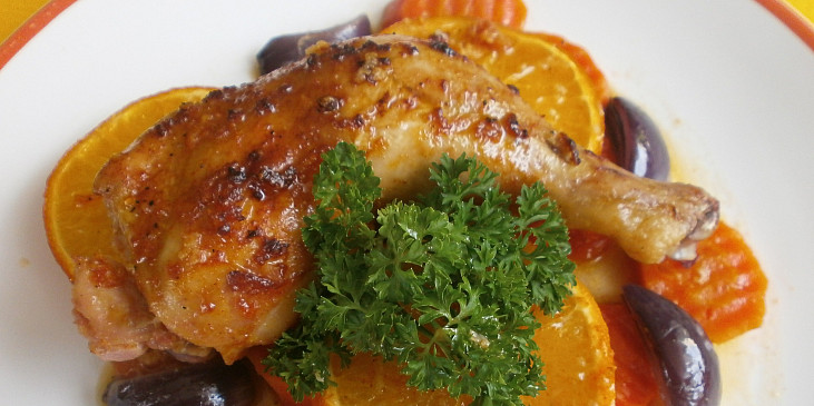 Fotografie k receptu Kuřecí stehna na mrkvi a pomerančích