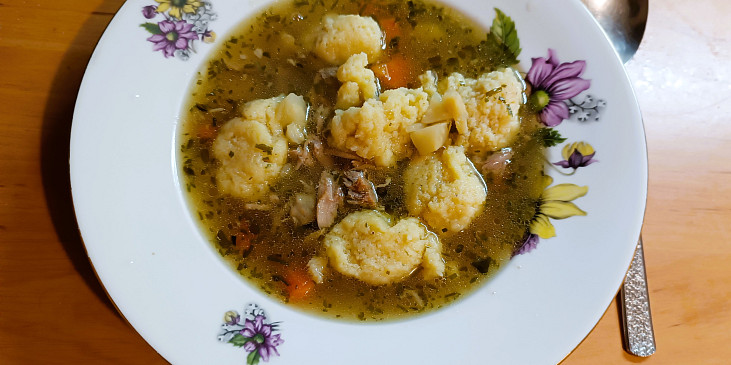 krk kuřecí, cibule, česnek, mrkev, celer, petržel, rajče, bobkový list, koření nové koření, pepř celý, sůl, kmín celý, máslo, sůl, ořech muškátový, vejce, krupice pšeničná, pažitka