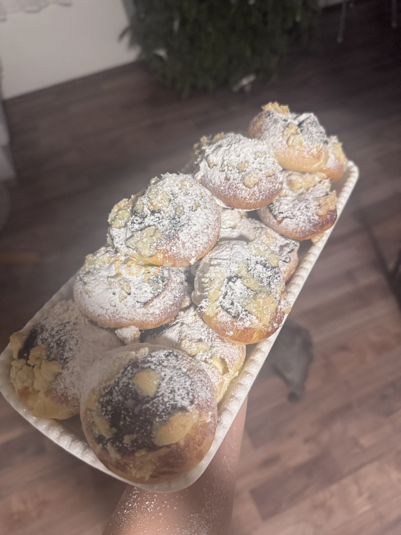 mouka polohrubá, sůl, droždí, žloutek, cukr, máslo, olej, mléko, tvaroh, vejce, cukr, cukr vanilkový, povidla švestková, mouka hrubá, máslo, cukr, vejce