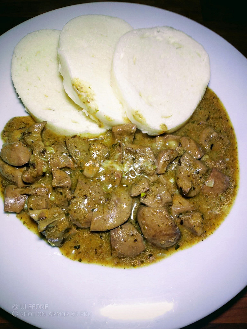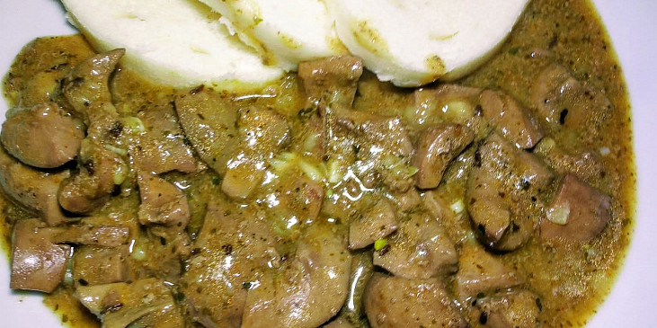 ledvinky vepřové, cibule, česnek, slanina, olej, voda, mouka hladká, majoránka, sůl, pepř