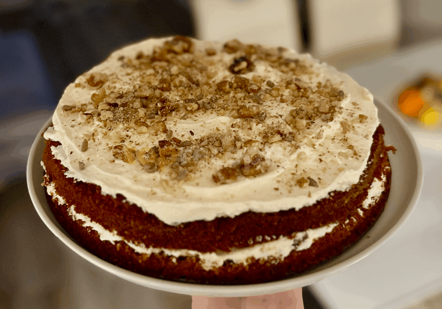 mrkev, jablko, vejce, mouka polohrubá, olej, cukr krupice, ořechy, kypřící prášek do pečiva, vanilkové aroma, skořice mletá, sůl, tuk, mouka polohrubá, mascarpone, sýr ricotta, tvaroh měkký, cukr, šťáva citronová, šťáva limetková