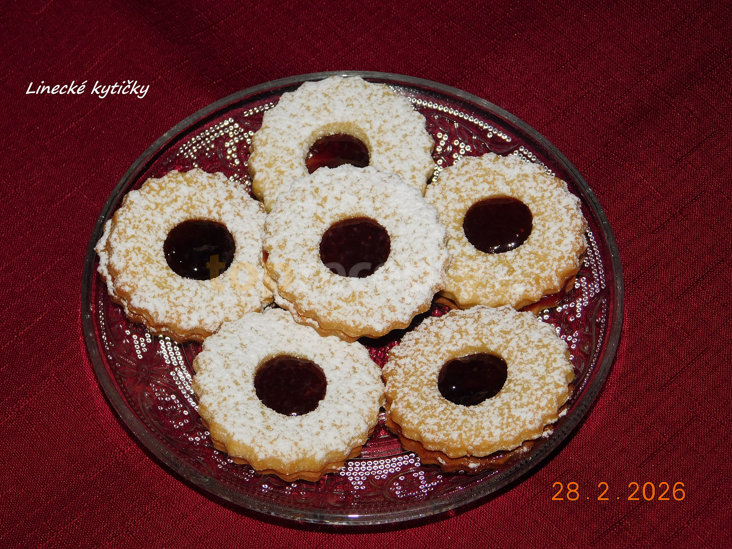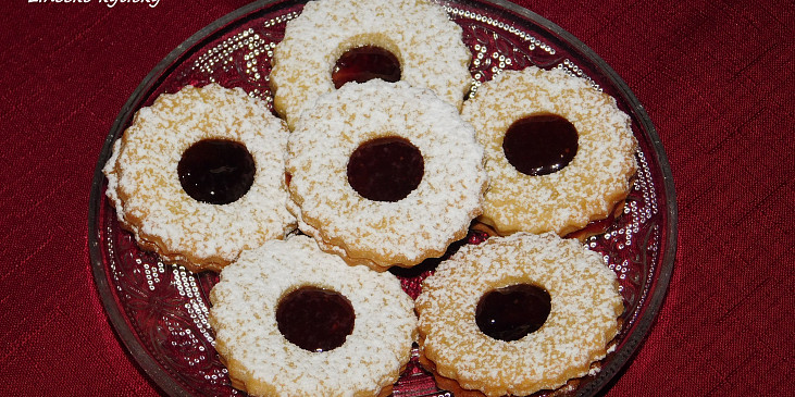 mouka hladká, máslo, cukr moučkový, žloutek, kypřící prášek, kůra citronová, cukr moučkový, cukr vanilkový, marmeláda rybízová