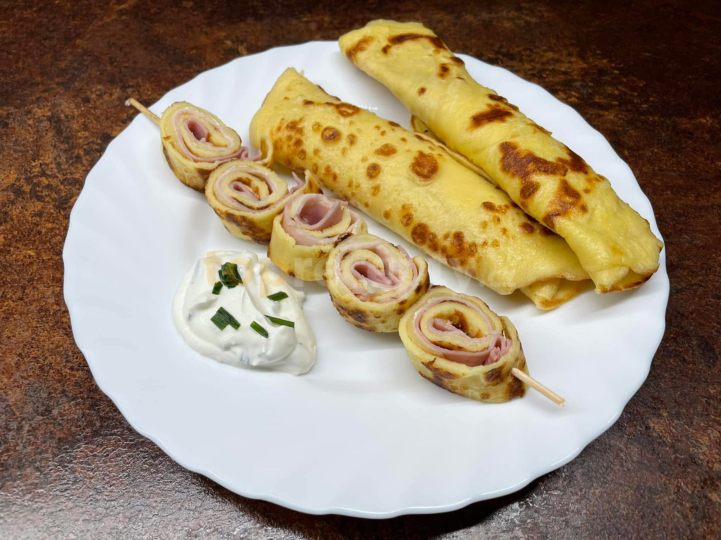 majolka, smetana zakysaná, vejce, voda, mouka hladká, sůl, pažitka, sýr plátkový, šunka