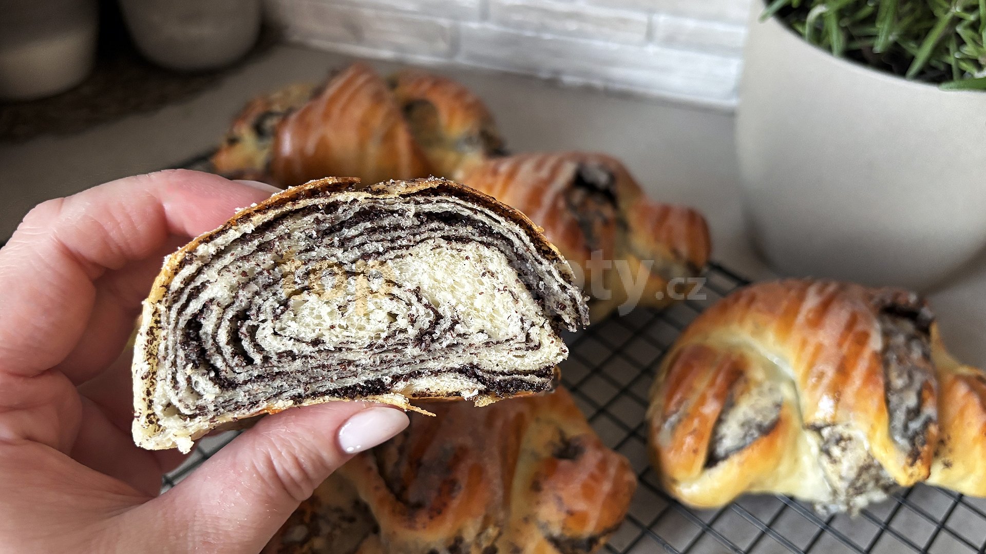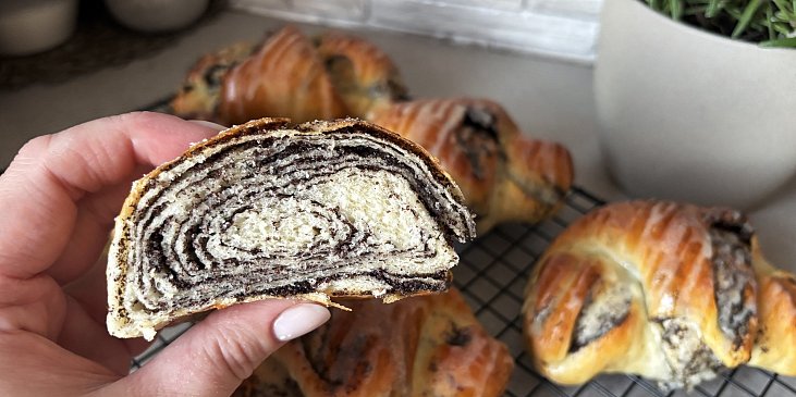 mouka hladká, mléko, olej, cukr, vejce, droždí čerstvé, sůl, mák mletý, máslo, cukr krupice, mléko, žloutek, mléko, cukr moučkový, likér vaječný