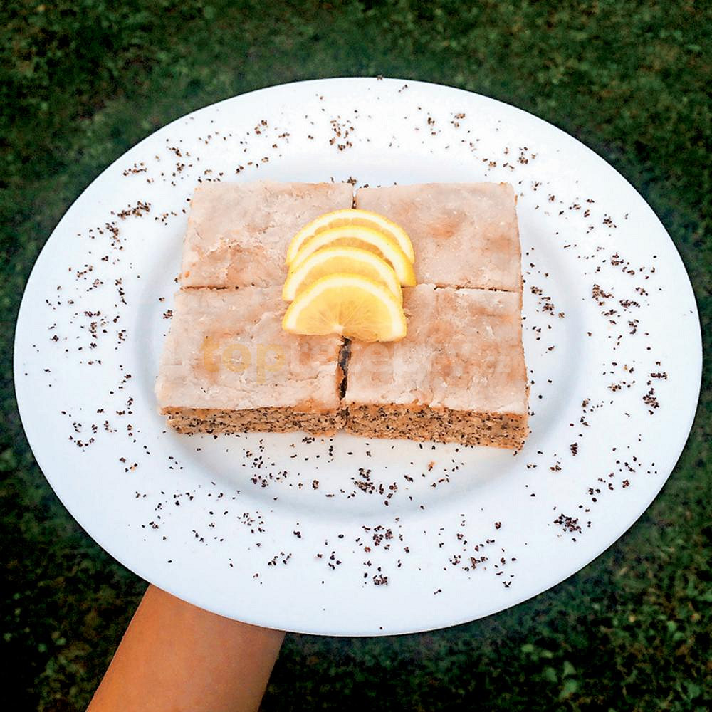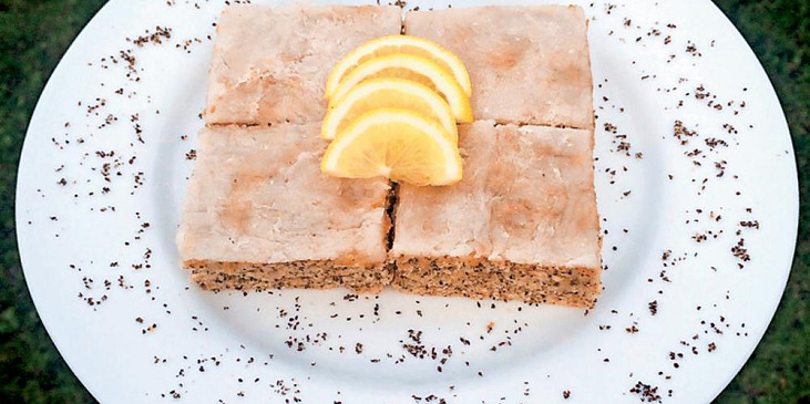 mouka hladká, kypřící prášek do pečiva, cukr krupice, cukr vanilkový, mák mletý, ořechy lískové mleté, vejce, mléko, olej, poleva citronová