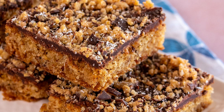 mouka polohrubá, cukr krupice, olej, mléko, smetana ke šlehání, cukr vanilkový, kypřící prášek do pečiva, čokoláda margot, poleva čokoládová, kokos, čokoláda margot, tuk, mouka hrubá