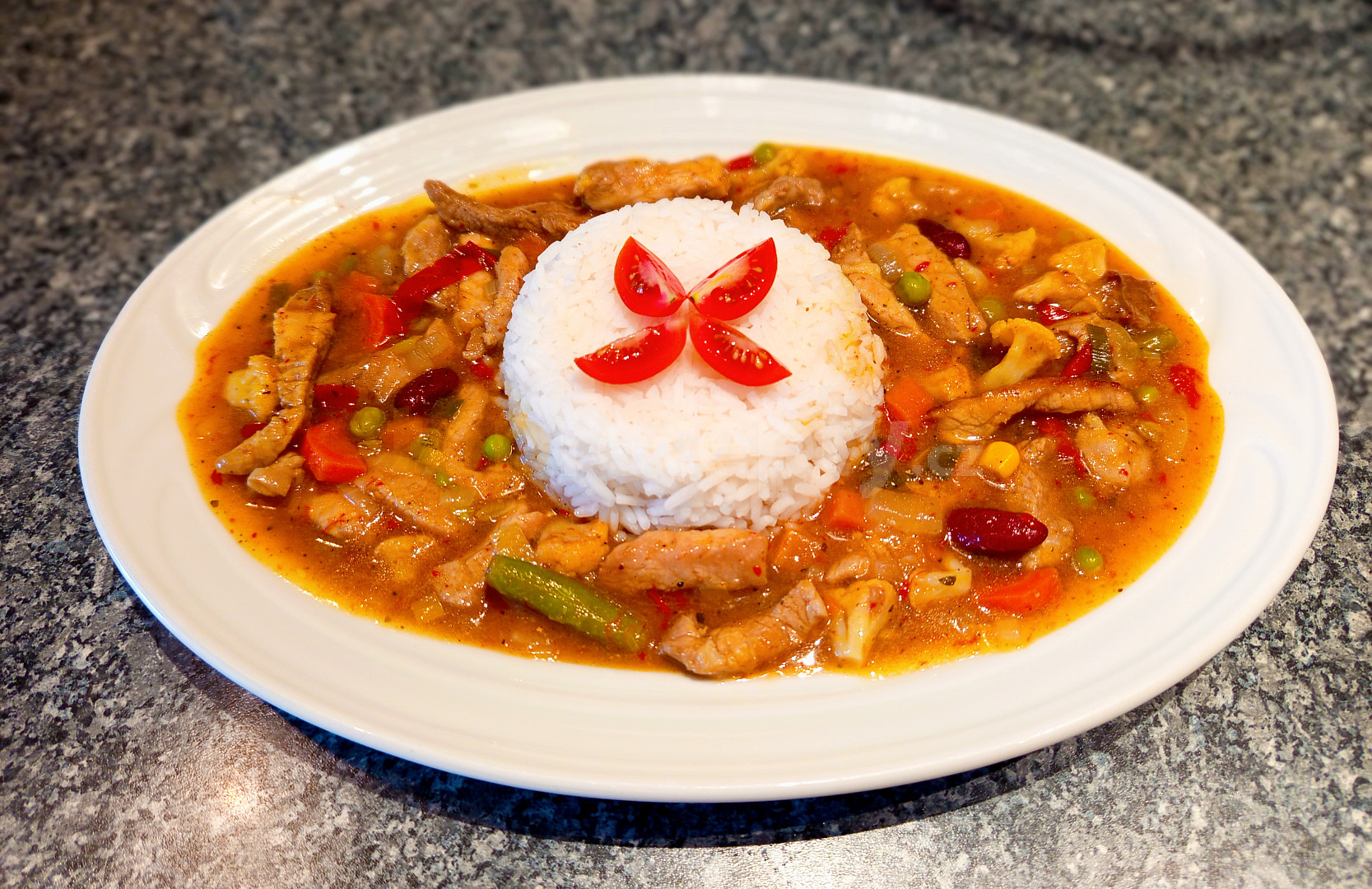 kotleta vepřová, cibule, česnek, směs zeleninová, kečup sladký, omáčka sojová, chilli, koření grilovací, sůl, pepř mletý, olej, voda, solamyl