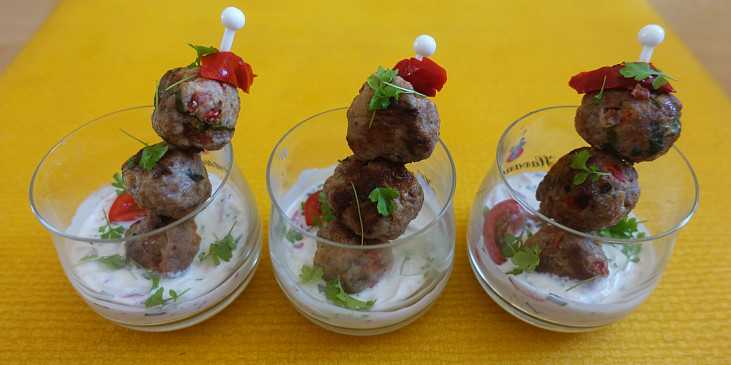 kýta vepřová, vejce, solamyl, rohlík, cibule, sůl, pepř mletý, koření provensálské, strouhanka, olej, ředkvičky, tvaroh plnotučný, majonéza, pažitka, sůl, pepř mletý, řeřicha, paprika sterilovaná