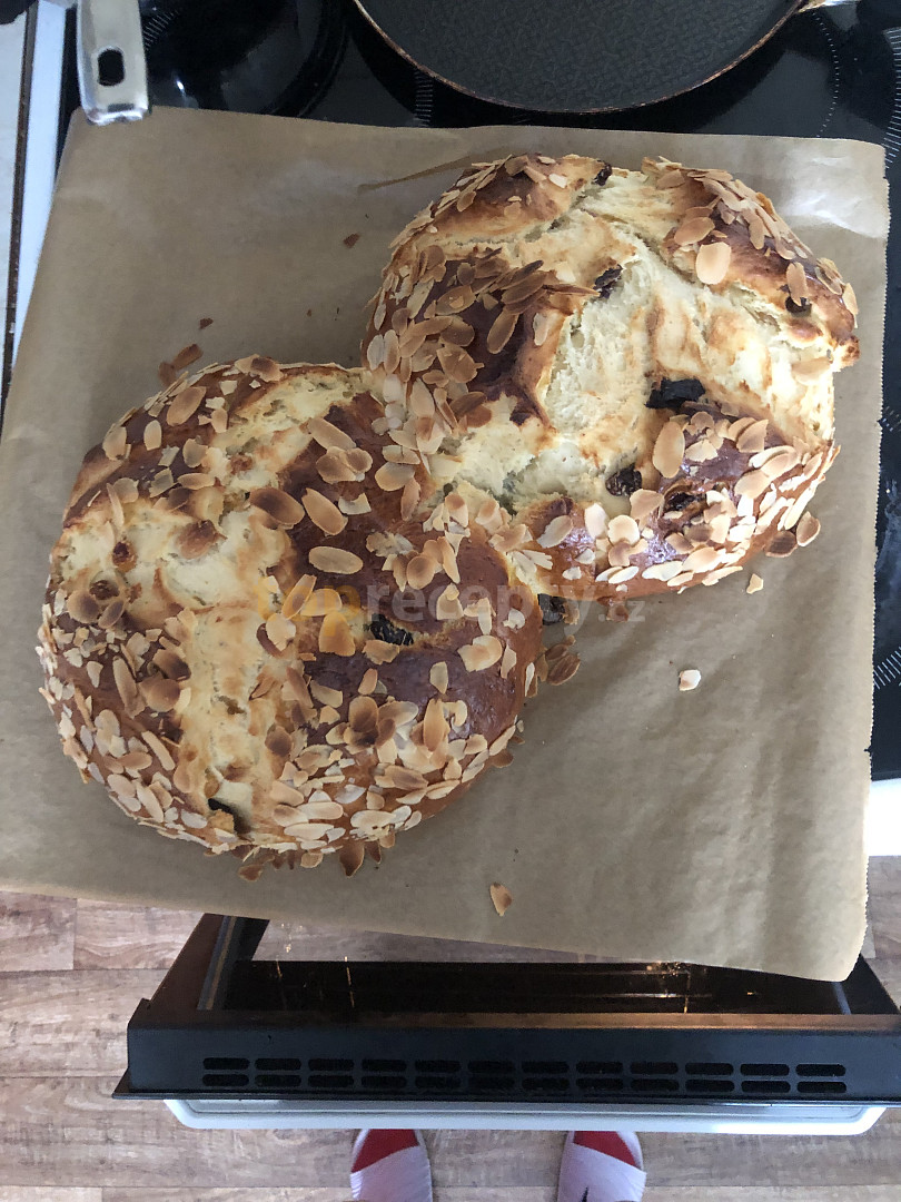mouka polohrubá, cukr krupice, droždí čerstvé, žloutek, máslo, mléko, rozinky, mandle, sůl, kůra citronová, anýz, rum, vejce, mléko
