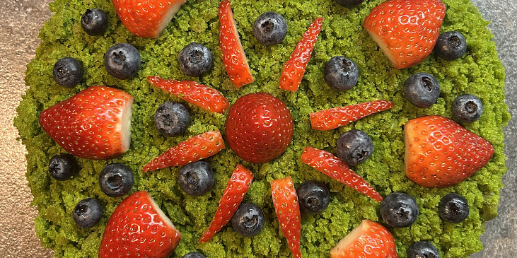 špenát baby, mouka hladká, cukr krupice, olej, vejce, kypřící prášek do pečiva, kůra citronová, šťáva citronová, tuk, mouka hrubá, mascarpone, smetana ke šlehání, cukr moučkový, šťáva citronová