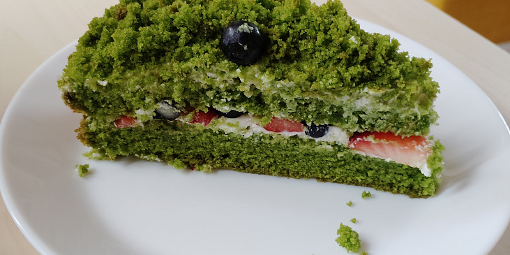 špenát čerstvý, vejce, mouka polohrubá, olej slunečnicový, cukr krystal, cukr vanilkový, kypřící prášek, mascarpone, smetana ke šlehání, limetka, cukr, ovoce