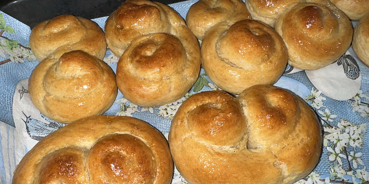 mouka polohrubá, mléko, žloutek, máslo, med, droždí čerstvé, sůl, kůra citronová, bílek, med