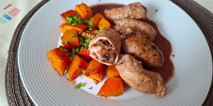 Kategorie a štítky receptu Mini roládky z vepřové panenky s pečenou dýní