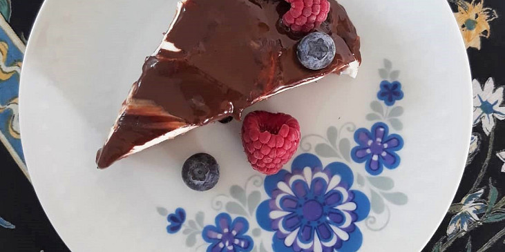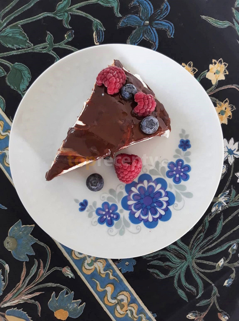 vejce, cukr krupice, voda, olej, mouka polohrubá, kakao, prášek do pečiva, tvaroh měkký, smetana ke šlehání, cukr vanilkový, poleva čokoládová
