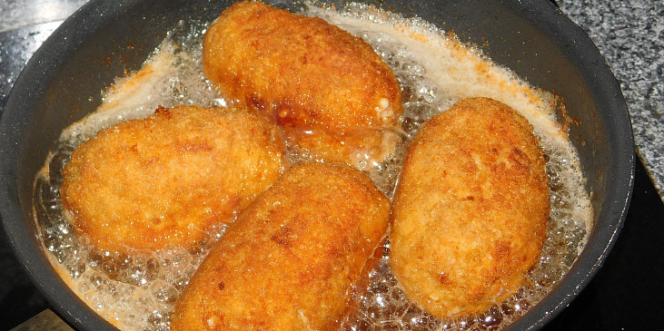 maso vepřové mleté, sýr uzený, sýr uzený, smetana ke šlehání, vejce, paprika sušená uzená, strouhanka, sůl, pepř mletý, mouka hladká, vejce, strouhanka, sádlo