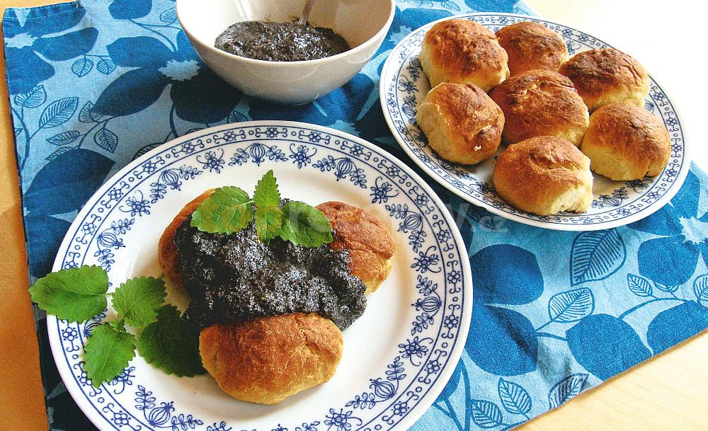 mouka hladká, mléko, vejce, sůl, máslo, droždí čerstvé, cukr krupice, sádlo, máslo, mák mletý, mléko, med, perník strouhaný, rum