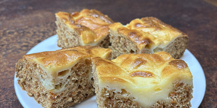 mrkev strouhaná, mouka hladká, cukr krupice, jablko, vejce, cukr vanilkový, soda jedlá, skořice mletá, sůl, kypřící prášek do pečiva, mascarpone, cukr moučkový, vejce, mouka polohrubá, tuk, mouka polohrubá