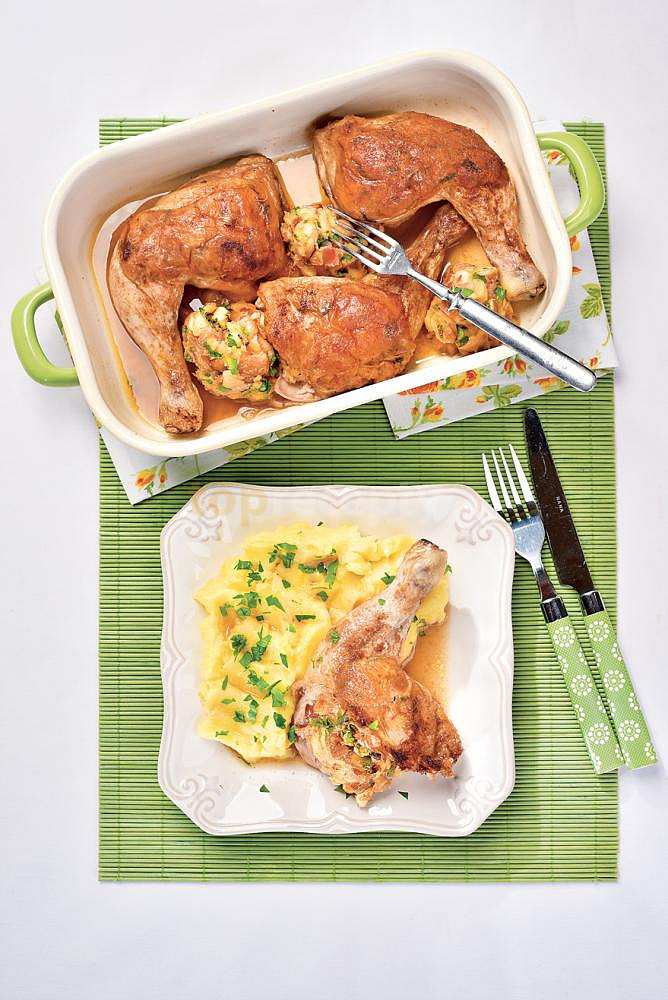 rohlík, mléko, vejce, slanina anglická, petrželka zelená, stehno kuřecí, sůl, koření grilovací, strouhaný muškátový oříšek