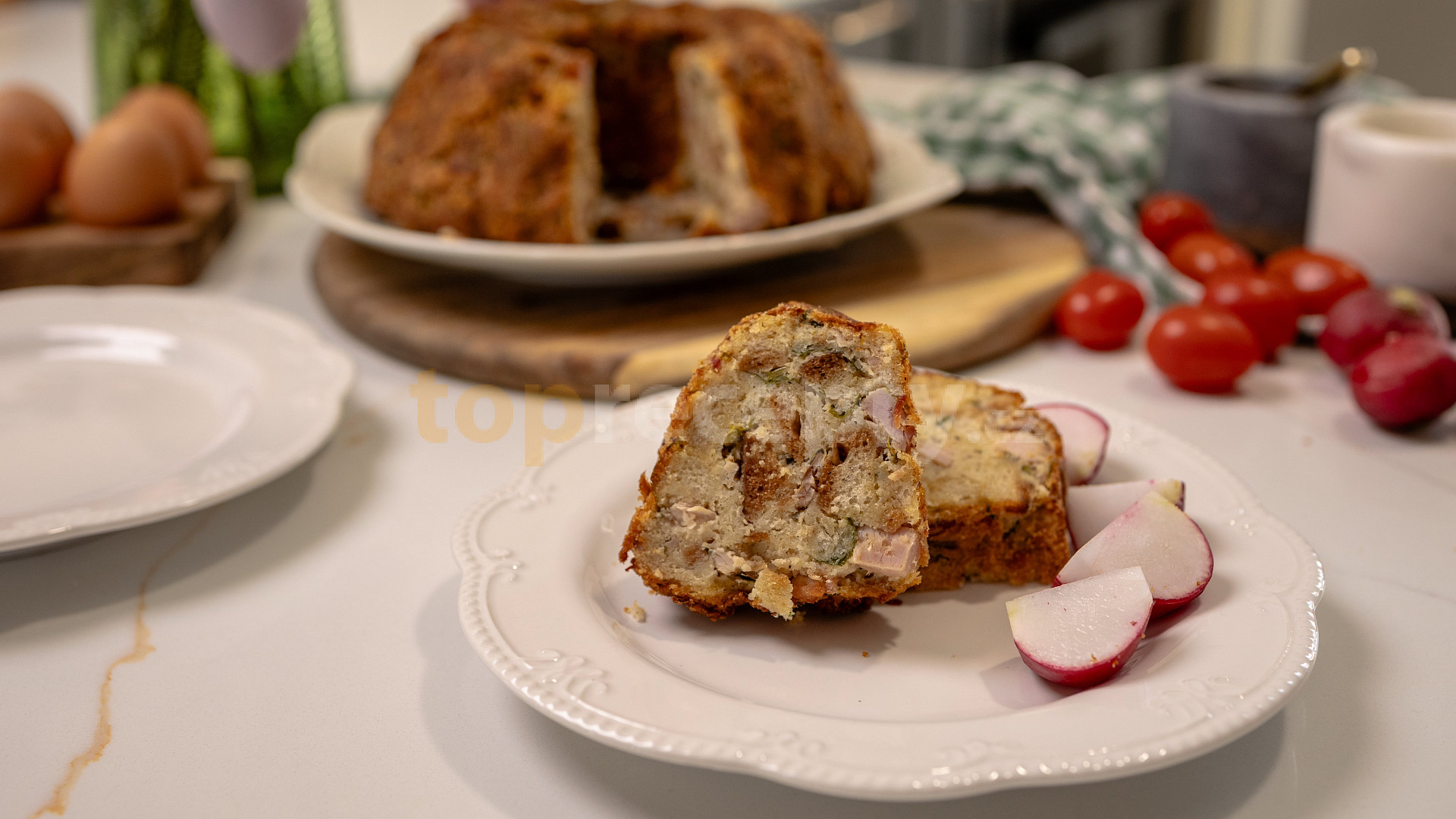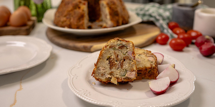 maso uzené, vejce, máslo, pepř mletý, majoránka, zázvor mletý, ořech muškátový, květ muškátový, kopřivy, houska, maso uzené, sůl, máslo