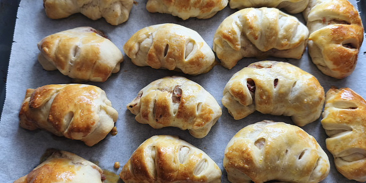 mouka hladká, mléko, olej, cukr, vejce, sůl, droždí sušené, olej, maso uzené, maso kuřecí, zelí kysané, sůl, koření grilovací