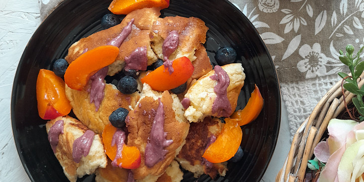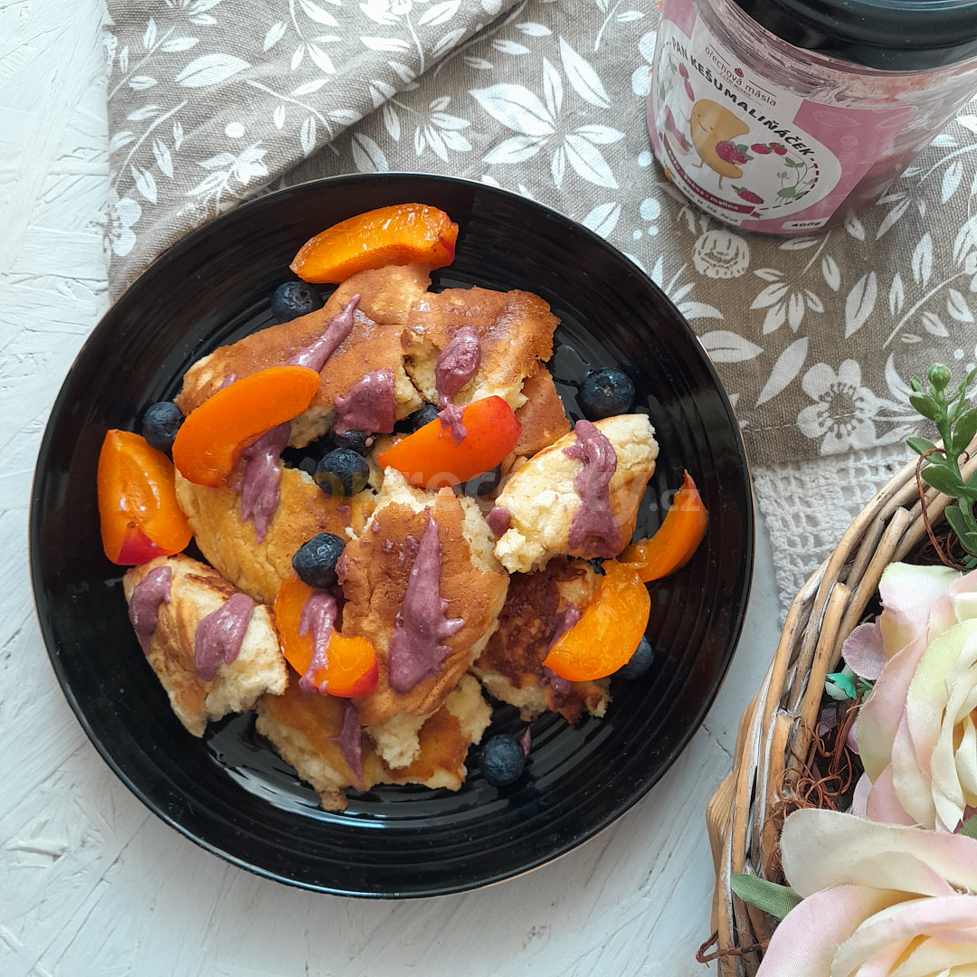 mouka hladká, mléko, bílek, cukr vanilkový, rozinky, sůl, máslo, cukr moučkový, ovoce, ořechy, pyré ovocné, šlehačka, smetana zakysaná, alkohol, karamel