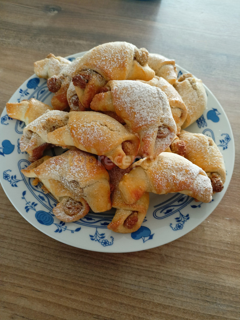 mouka hladká, máslo, cukr moučkový, smetana ke šlehání, žloutek, sůl, ořechy vlašské, cukr moučkový, bílek, extrakt vanilkový, bílek, vejce