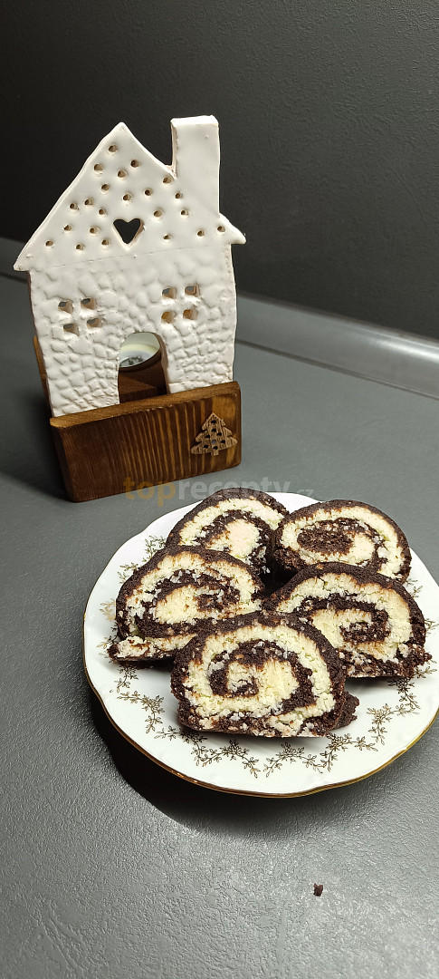 sušenky máslové, cukr moučkový, kakao, rum, žloutek, mléko, cukr moučkový, máslo, cukr moučkový, kokos strouhaný, cukr vanilkový, kokos strouhaný, cukr moučkový
