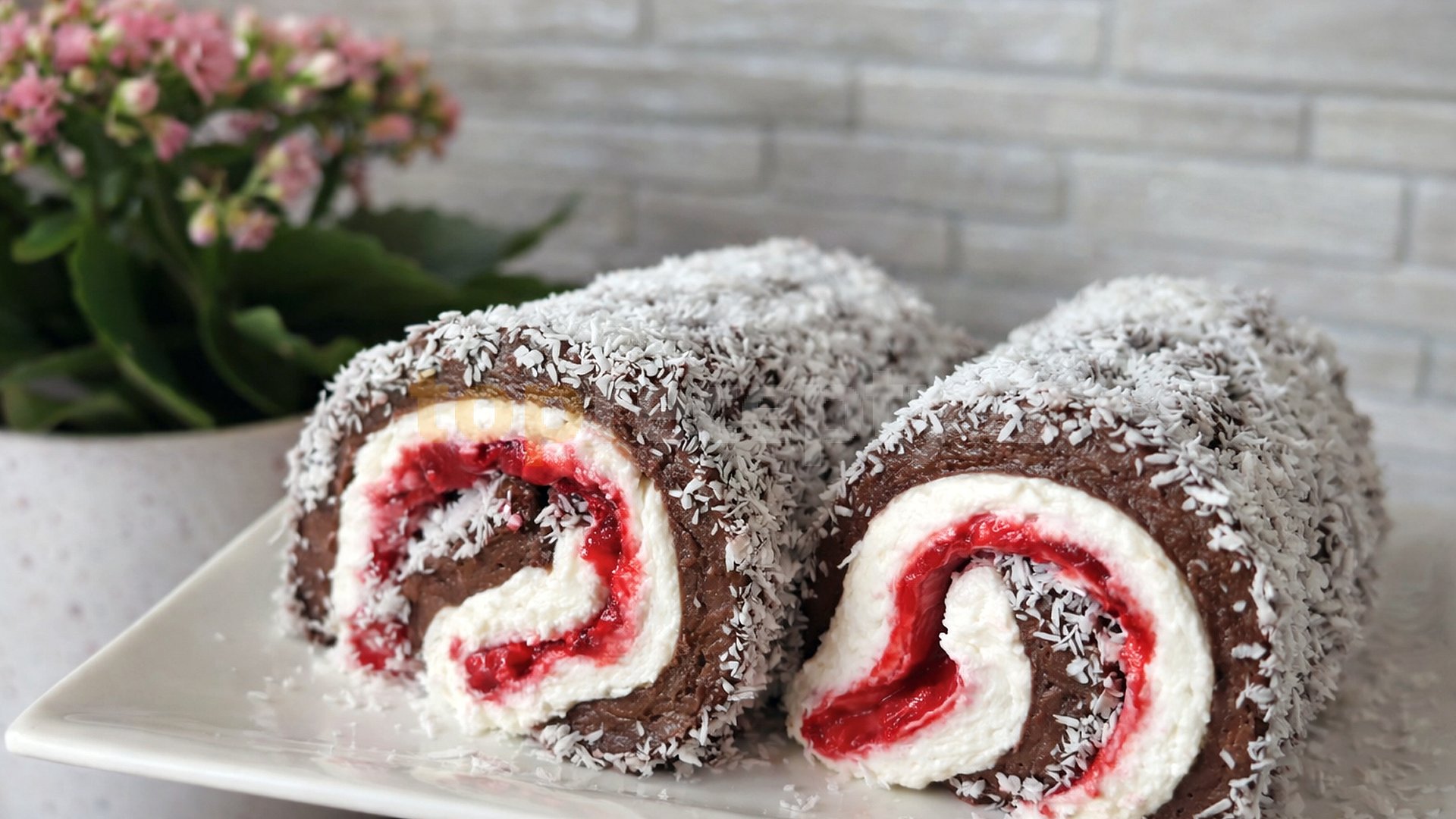 mléko, cukr, mouka hladká, kakao, máslo, cukr vanilkový, smetana ke šlehání, tvaroh ve vaničce, marmeláda, kokos strouhaný