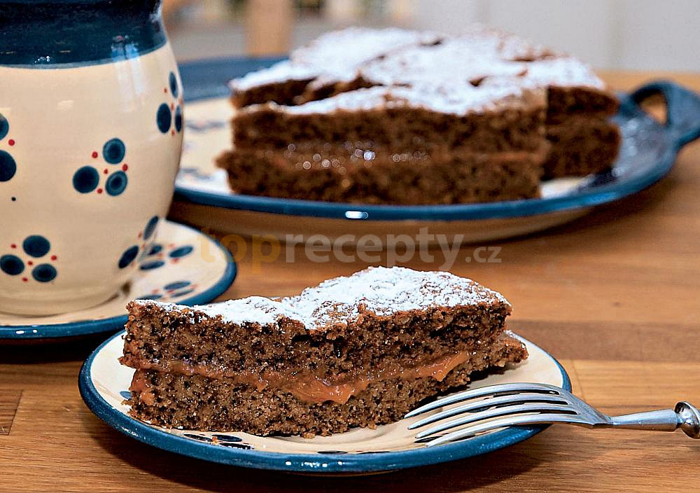 jablko, ořechy vlašské, vejce, olej, cukr krystal, mouka polohrubá, soda jedlá, skořice mletá, sůl, marmeláda, cukr moučkový, šlehačka