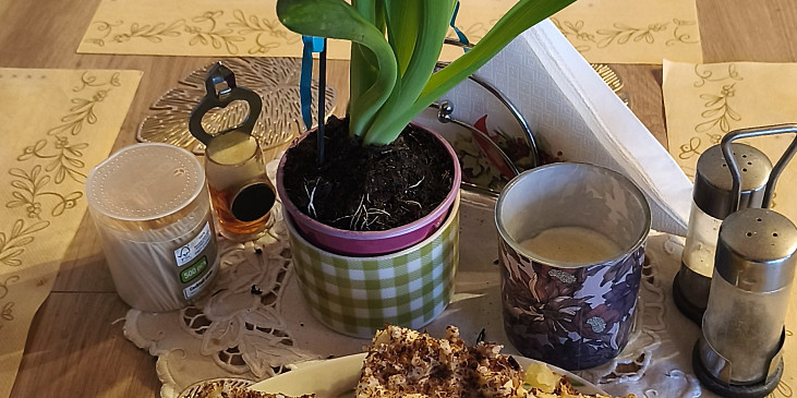 mouka polohrubá, cukr krystal, vejce, prášek do pečiva, soda jedlá, kompot ananasový, pomazánkové máslo, pudink vanilkový se šlehačkou v kelímku, cukr, rum