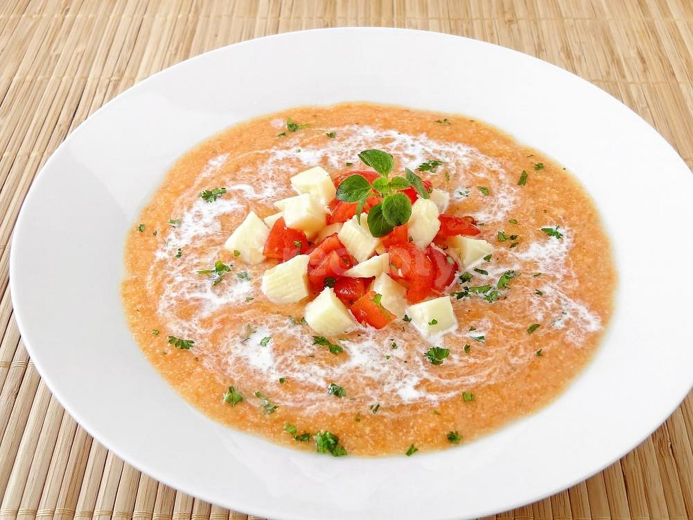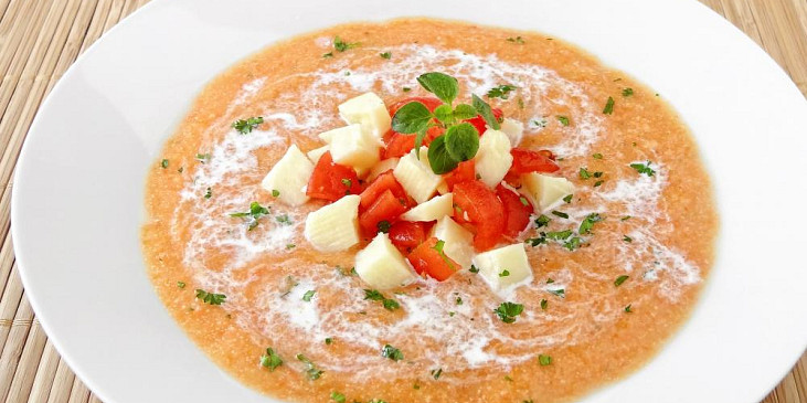 čočka červená, cibule, česnek, rajče, vývar zeleninový, smetana na vaření, olej, sůl, pepř mletý, skořice mletá, zázvor mletý, koření hřebíček, koření chilli, rajče, sýr gouda, petrželka