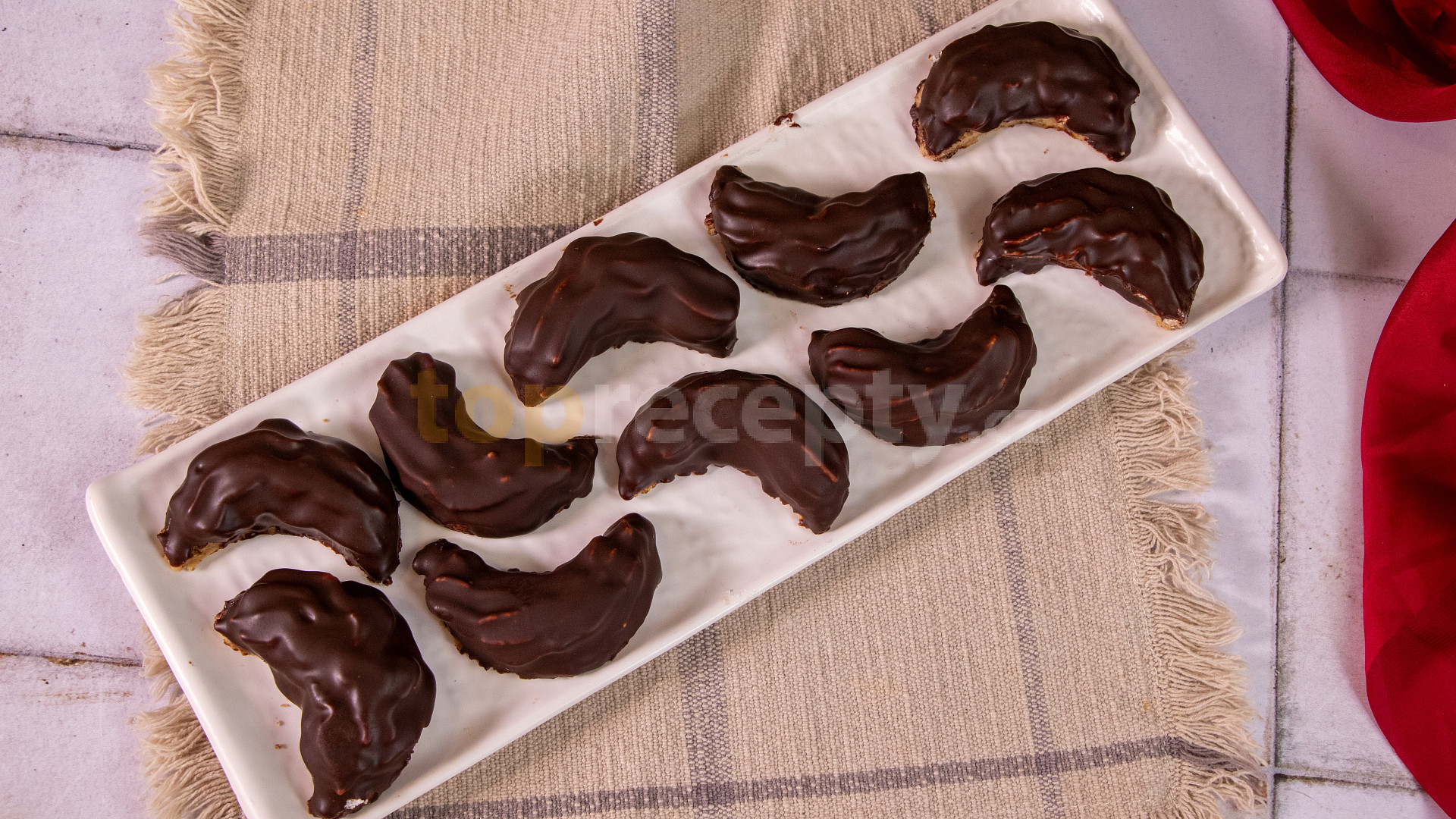 ořechy mleté, cukr moučkový, vejce, žloutek, mouka polohrubá, kakao, mléko, mouka polohrubá, máslo, cukr moučkový, cukr vanilkový, čokoláda na vaření, máslo