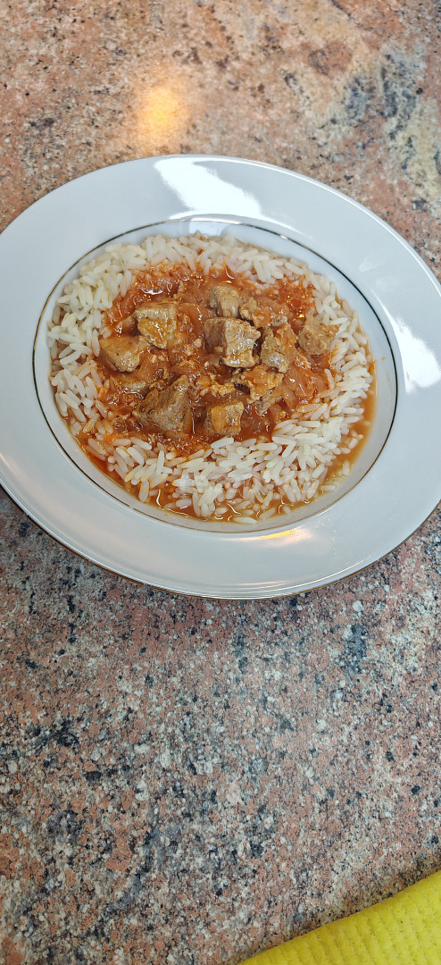 plec vepřová, cibule, sádlo, česnek, olej, protlak rajčatový, hořčice pikantní, vývar masový, zázvor mletý, sůl, pepř mletý, chilli, kmín mletý