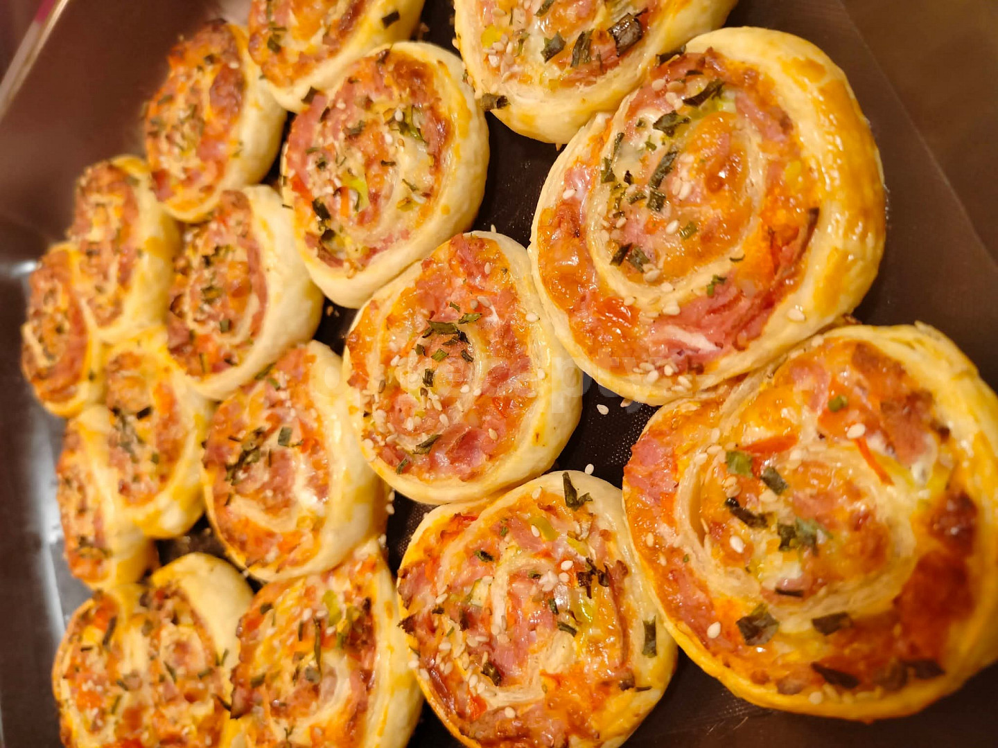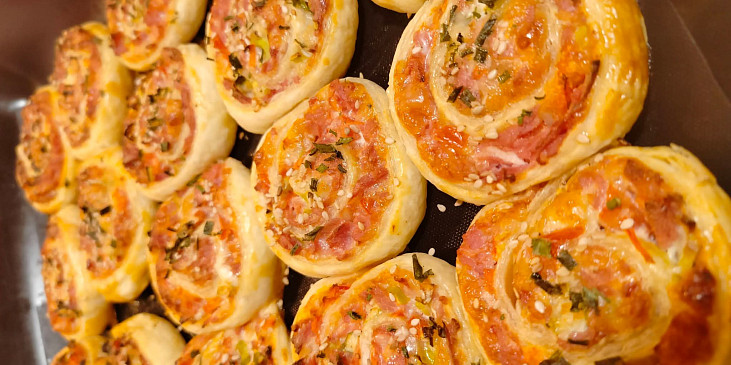 těsto listové, kečup sladký, šunka, sýr plátkový, koření pizza, vejce
