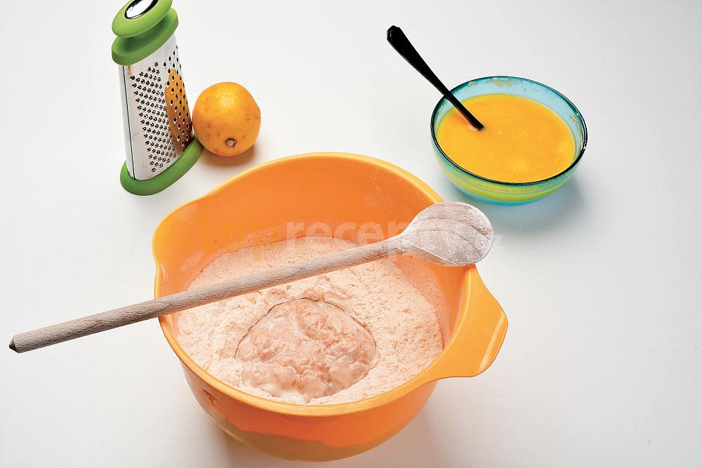 mouka hladká, sůl, cukr krupice, cukr vanilkový, kůra citronová, droždí čerstvé, mléko, máslo, vejce, povidla švestková, cukr moučkový, voda, šťáva citronová, zdobení cukrářské
