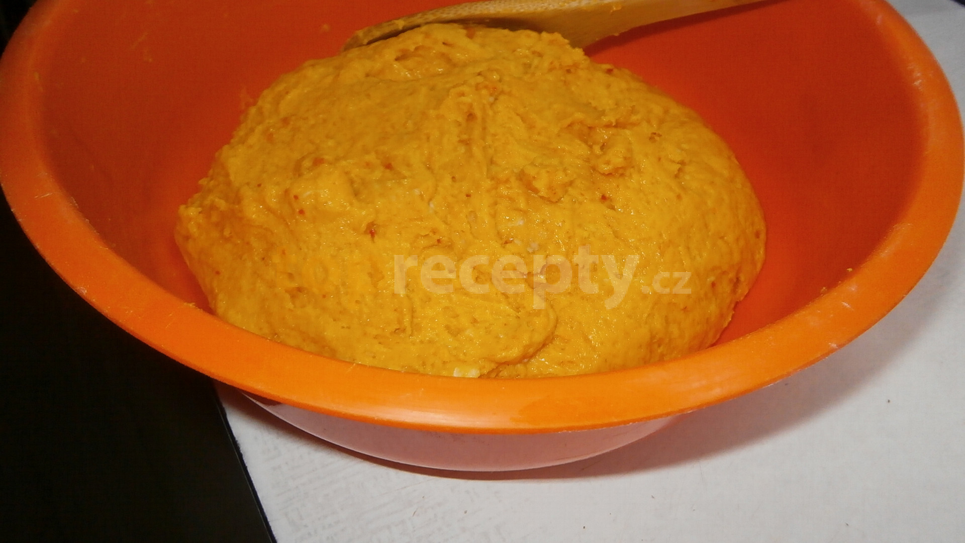 mouka špaldová hladká, cukr třtinový, droždí čerstvé, sůl, olej, máslo, pyré dýňové, pasta vanilková, mléko rostlinné, máslo, rum, cukr moučkový, olej
