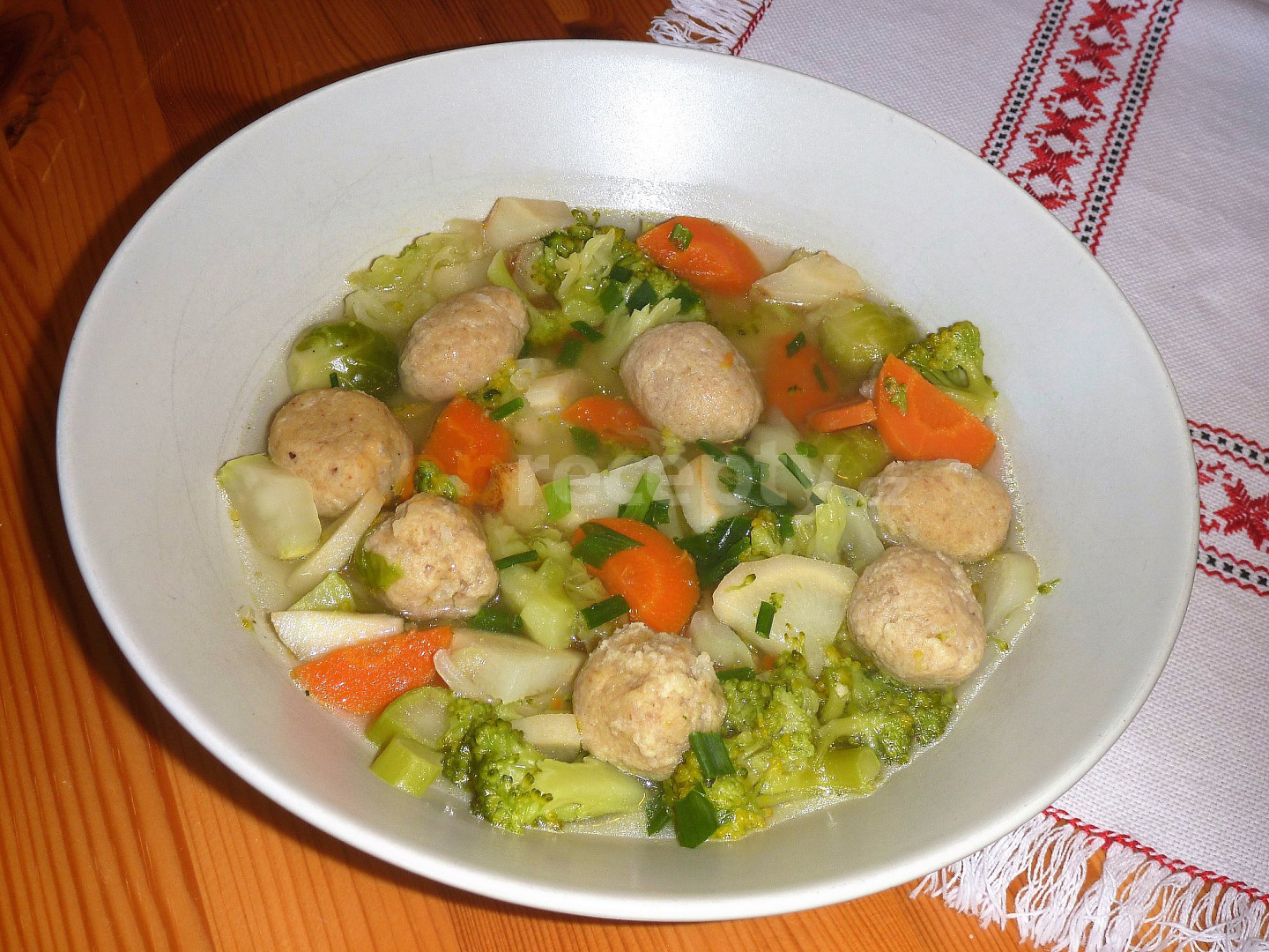 kost, maso hovězí, maso kuřecí, cibule, mrkev, petržel, celer, sůl, pepř mletý, máslo, droždí, strouhanka, vejce, sůl, květ muškátový, nať petrželová