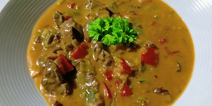 olej, cibule, česnek, špek, játra králičí, paprika sušená sladká, pórek, kapie, smetana ke šlehání, vývar masový, sůl, pepř mletý, máslo, mouka hladká